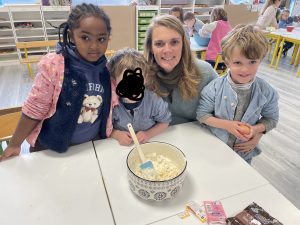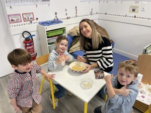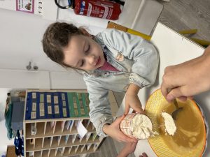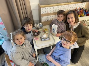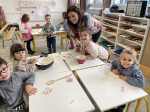 Nous avons eu la chance de pouvoir le faire en petit groupe grâce à la présence de plusieurs mamans ce qui nous a permis de plus manipuler.